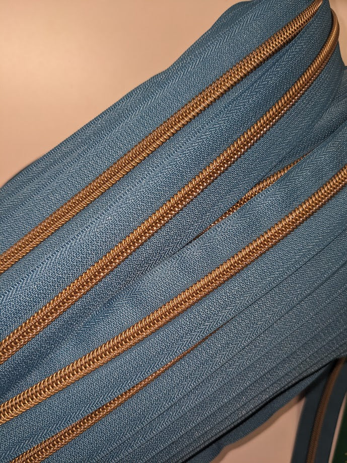 #5 Zippers By the Yard -Light Ocean with Antique Brass