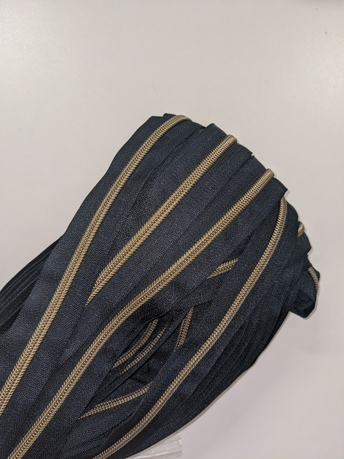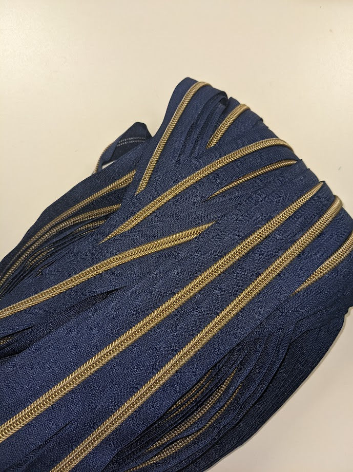 #5 Zippers By the Yard - Navy with Antique Brass