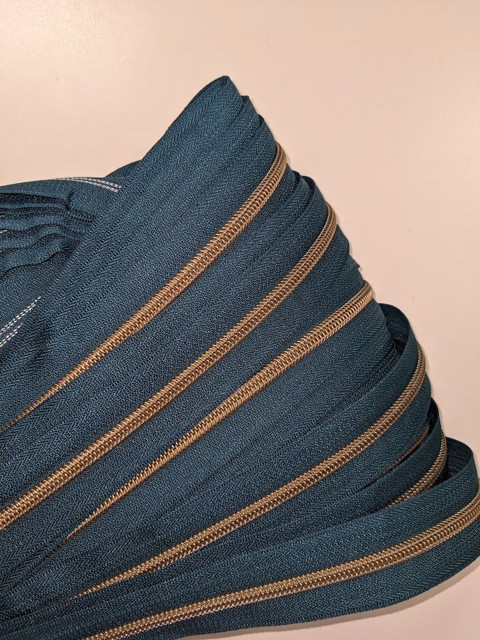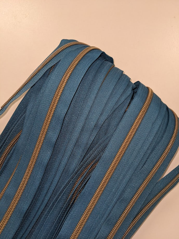 #5 Zippers By the Yard -Dark Ocean with Antique Brass