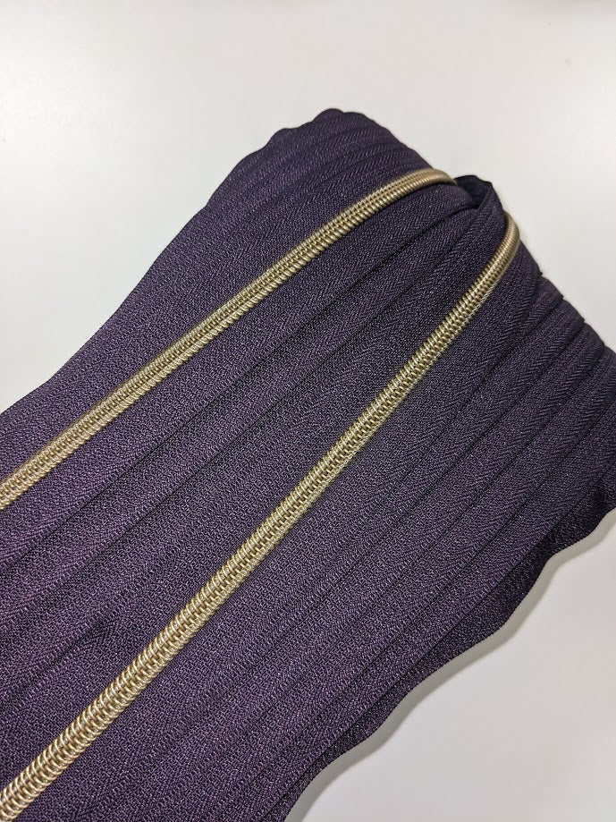#5 Zippers By the Yard - Plum with Antique Brass