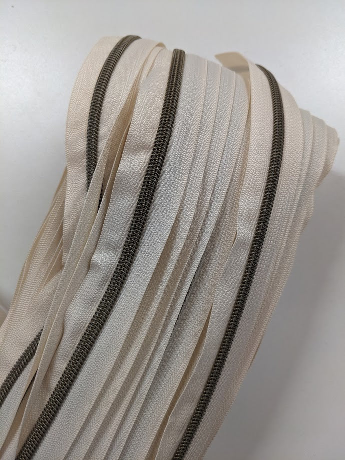 #5 Zippers By the Yard - Vanilla with Antique Brass
