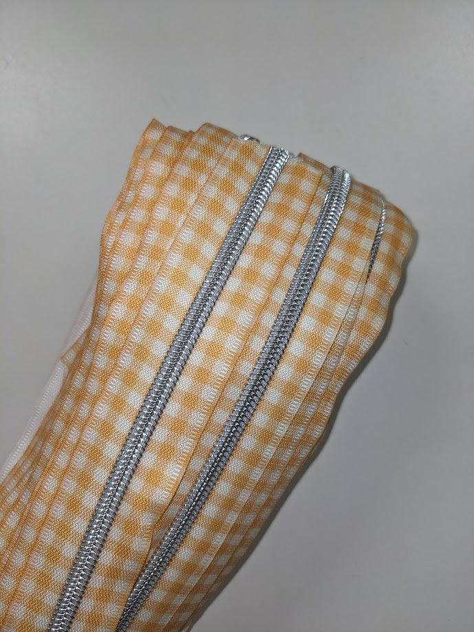 #5 Zippers By the Yard - Gingham Yellow with Silver Teeth