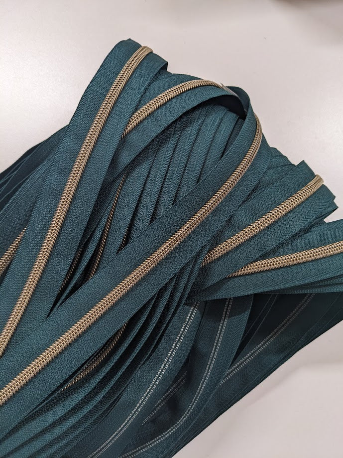 #5 Zippers By the Yard - Peacock Green with Antique Brass