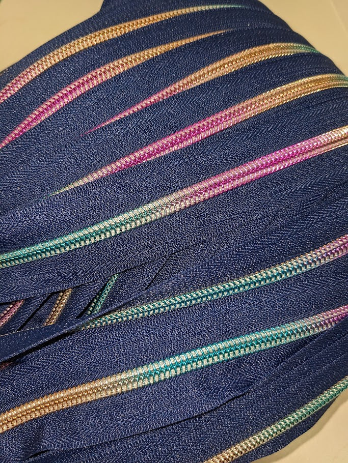 #5 Zippers By the Yard - Navy with Rainbow Coil