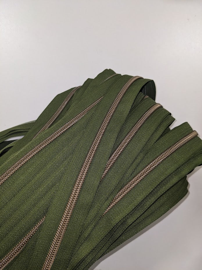 #5 Zippers By the Yard - Olive with Antique Brass