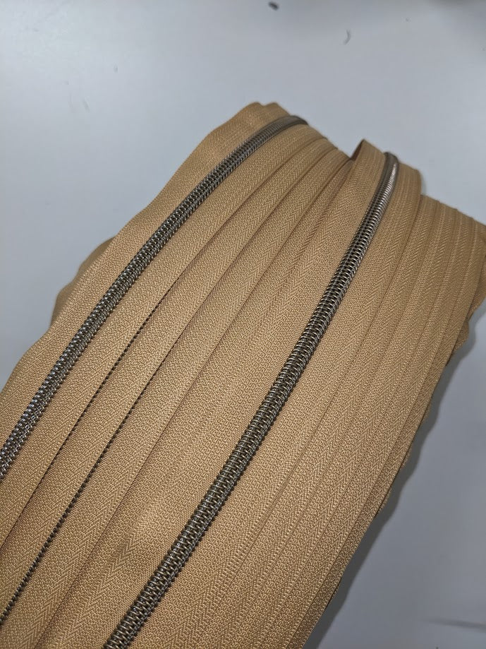 #5 Zippers By the Yard - Sand with Antique Brass