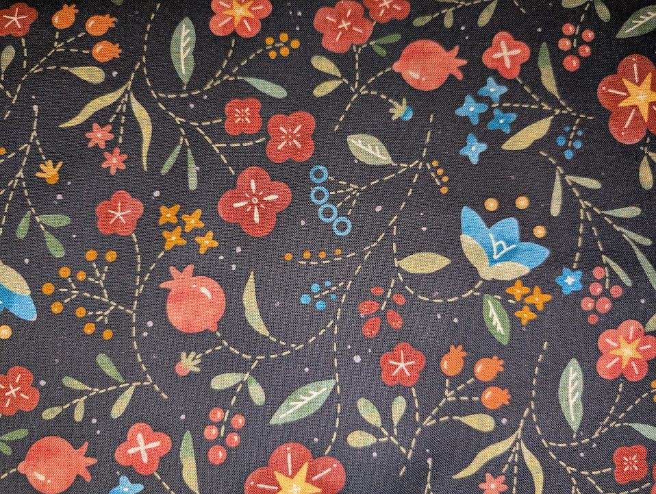 1 yd Black Large Black Flower Wooly Whims