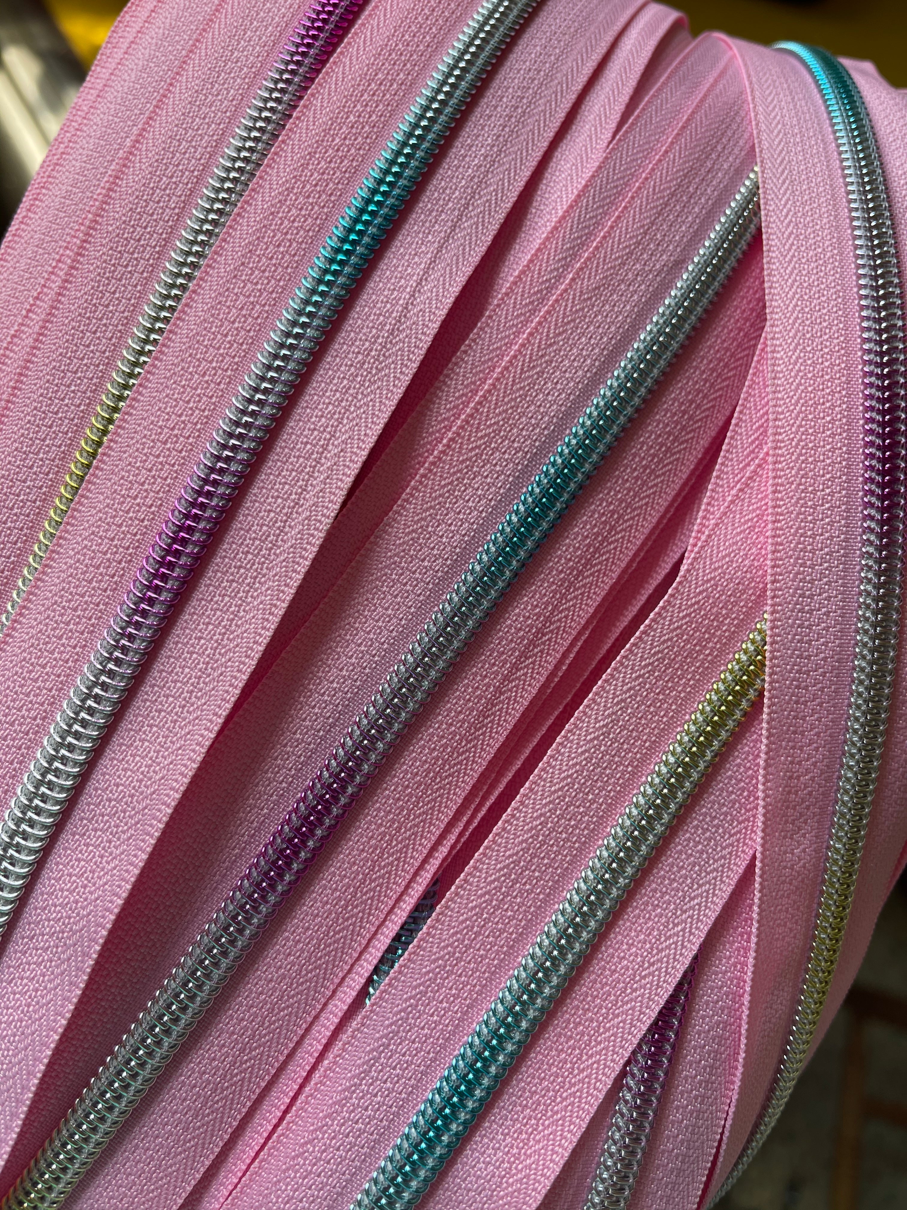 #5 Zippers By the Yard - Pink with Rainbow Coil