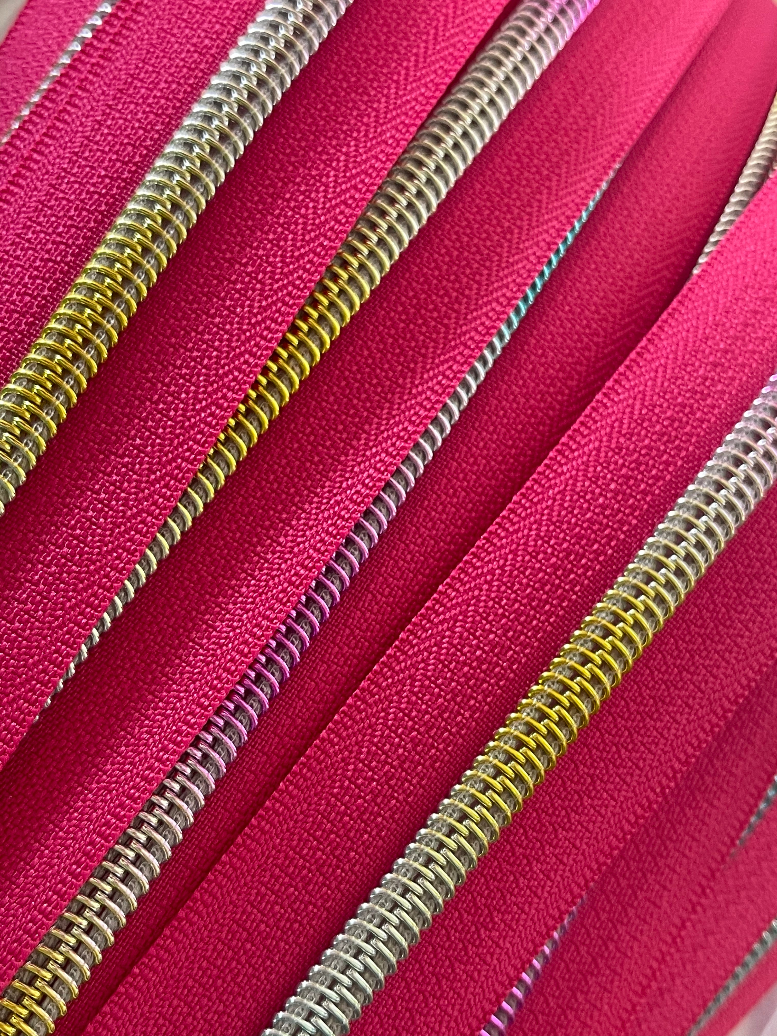 #5 Zippers By the Yard - Hot Pink with Rainbow Coil