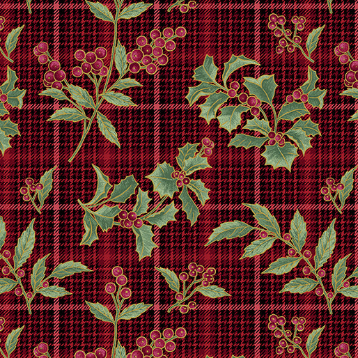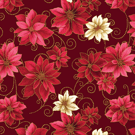 Festive Medley (Metallic) - Poinsettia Scroll Red