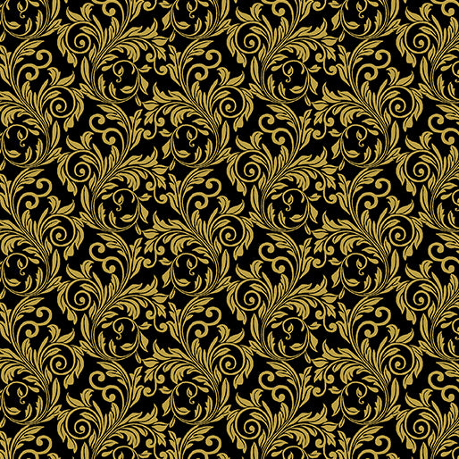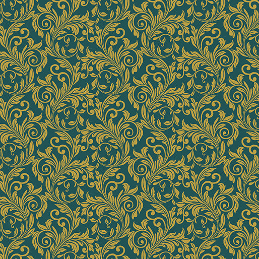 Festive Medley (Metallic) - Golden Leaf Scroll Dark Teal