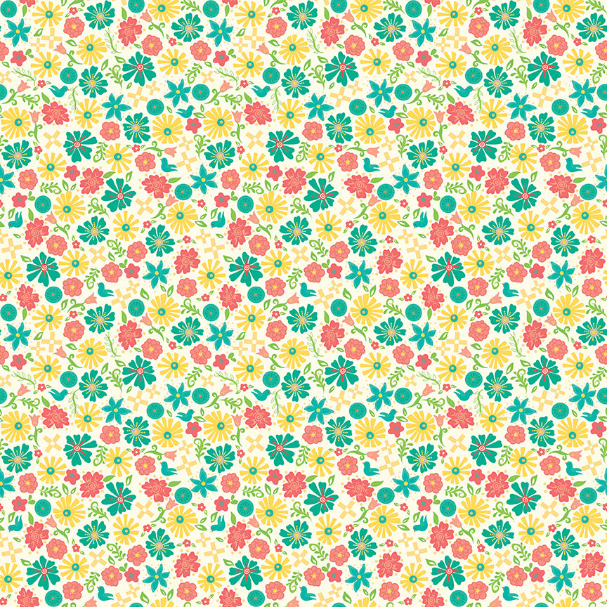 Garden Party by Whistler Studios for Windham Fabrics - 53978-2 - Yellow Festive Florals - Sold in 1/4 yard increments