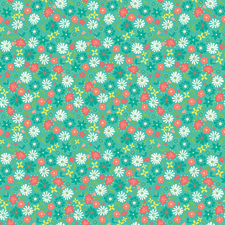 Garden Party by Whistler Studios for Windham Fabrics - 53981-3 - Green Sweetheart Bouquet - Sold in 1/4 yard increments