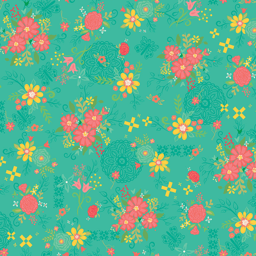Gingham Cottage - Scatter Floral Teal