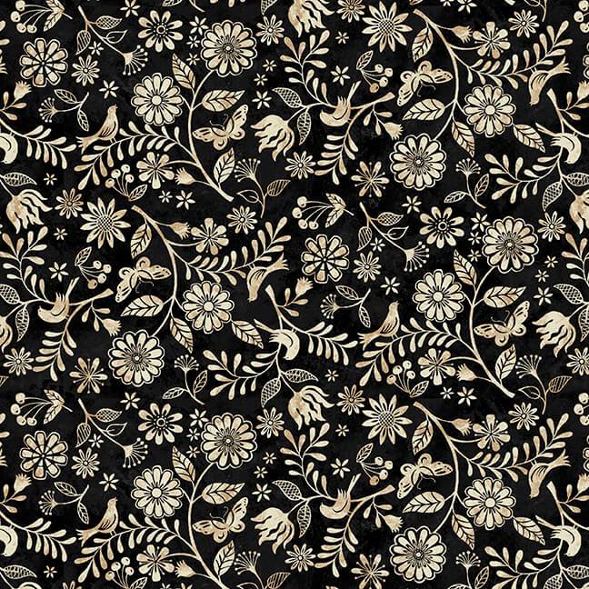 Le Poulet - Small Wildflower Black - Sold Per 1/4 Yard