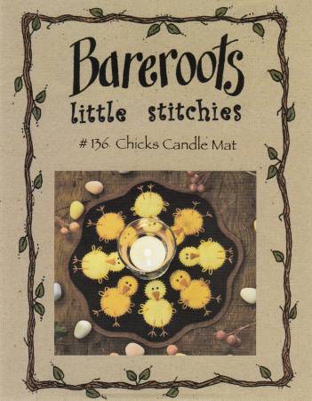 Darling little fluffy chicks circle this sweet candle mat. Make with wool felt and embroidery stitches. Finished size: 9 inches round. Kit sold separately order BR136K. Great to use for a Spring or Easter Holiday project.