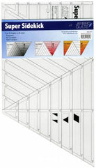 This ruler cuts diamonds, triangles and half triangles. Each ruler comes with full color directions. The Sidekick and Hex N More rulers can work together or alone. The shapes and sizes cut from each ruler can work together to make unique and interesting designs. All of the pieces can be rotary cut from strips