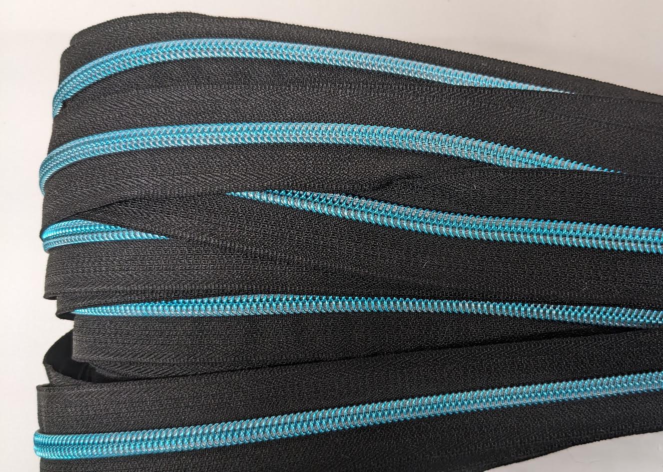 #5 Zippers By the Yard - Black with Crystal Blue Coil
