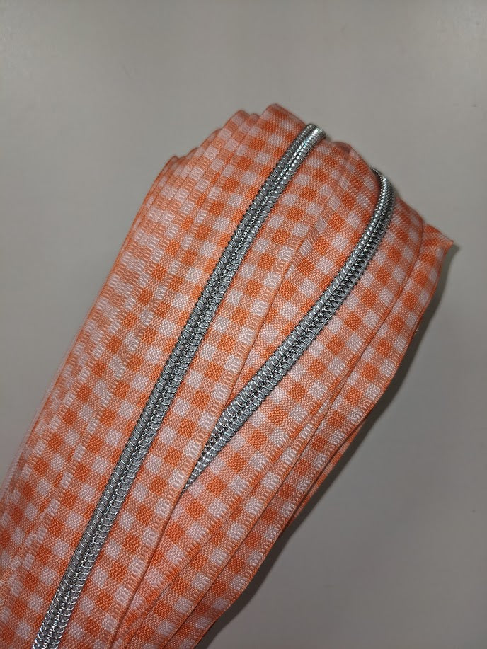 #5 Zippers By the Yard - Gingham Orange with Silver Teeth