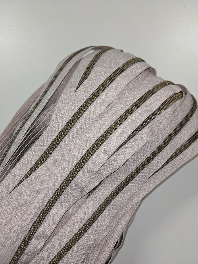 #5 Zippers By the Yard - Chalk with Antique Brass