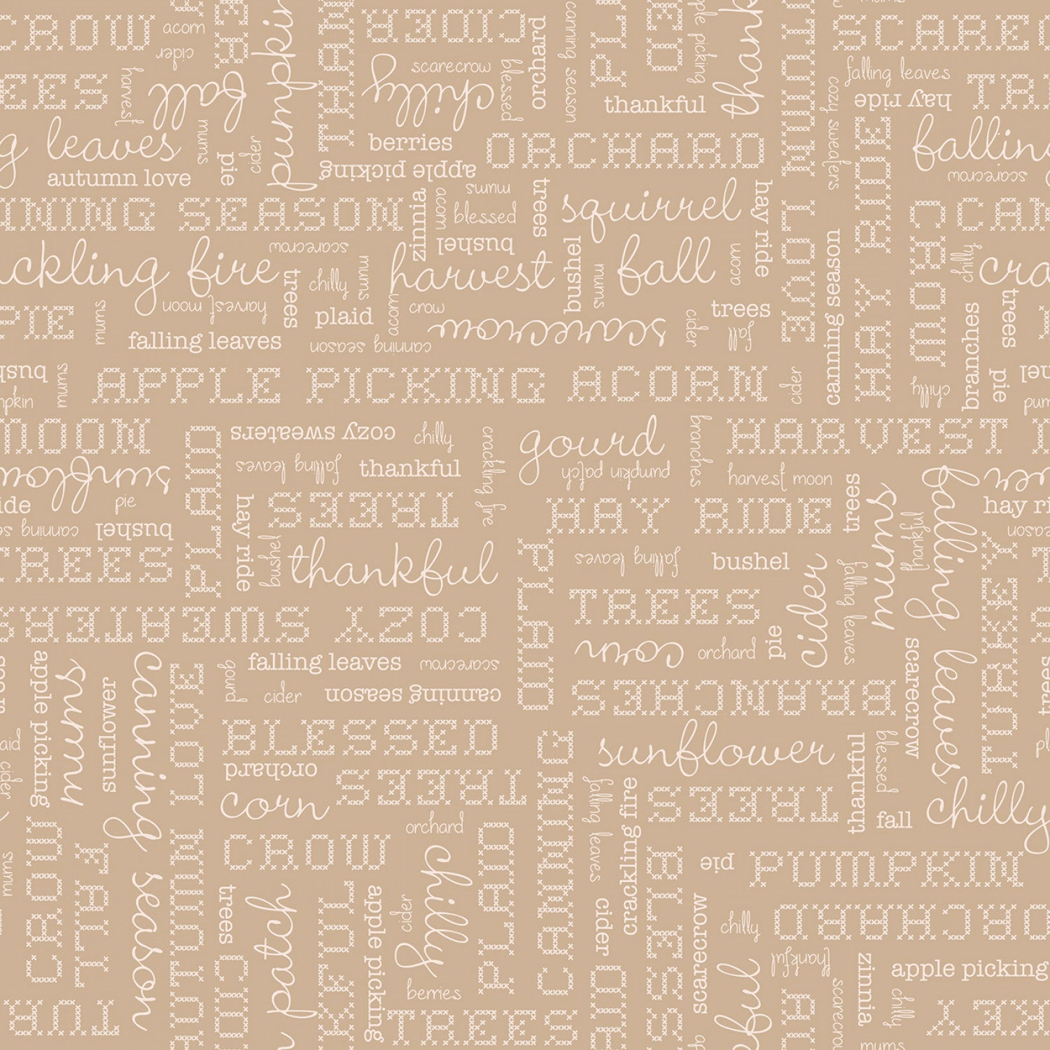 Autumn by Lori Holt for Riley Blake - Autumn Words Tea Dye- Sold in 1/4 Yd Increments