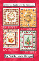 Third in the series of 3 patterns. Instructions for 4 monthly wall hangings (September to December) of various sizes. Pattern features Celebrate the Seasons Panels and coordinates by Hoffman Fabrics.