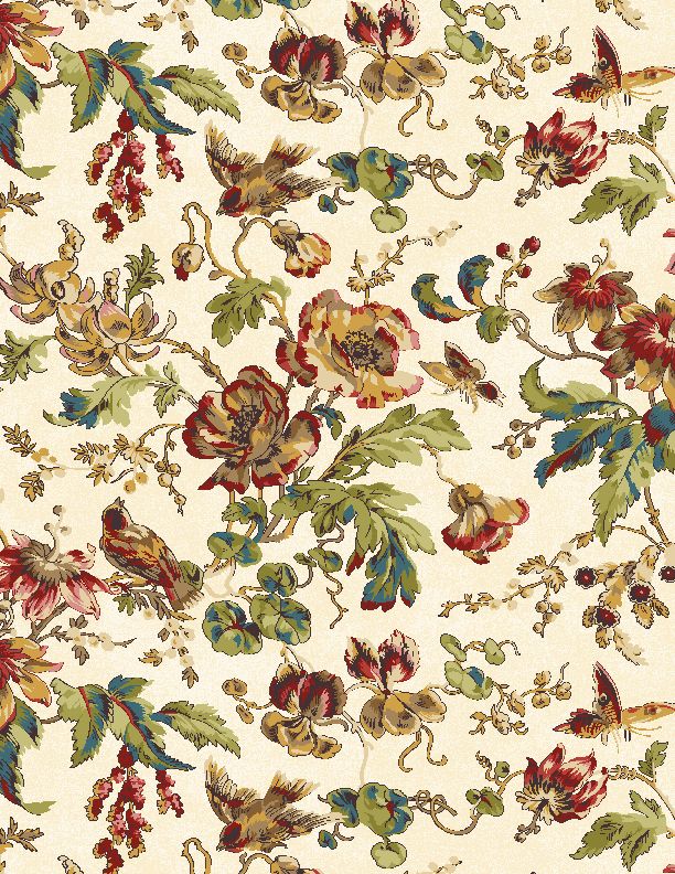 Countryside by the yard - Medium Floral Cream