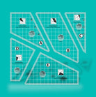Create 8 inch finished Scrap Crazy blocks with the five templates in this Crazier Eight set. All of the pieces can be cut from those odd sized scraps in your stash or stack fabrics and cut multiples out of ten inch squares in a matter of minutes. The tips are trimmed when needed so the pieces sew together perfectly every time. Embellish the seams, if desired, with your favorite decorative stitches and threads. Make an entire quilt or sew them into a scrappy, decorative border. For even more design options, combine blocks created with the Scrap Crazy Eight template set (Item CGRMT4) which makes eight inch finished blocks with an entirely different set of templates.