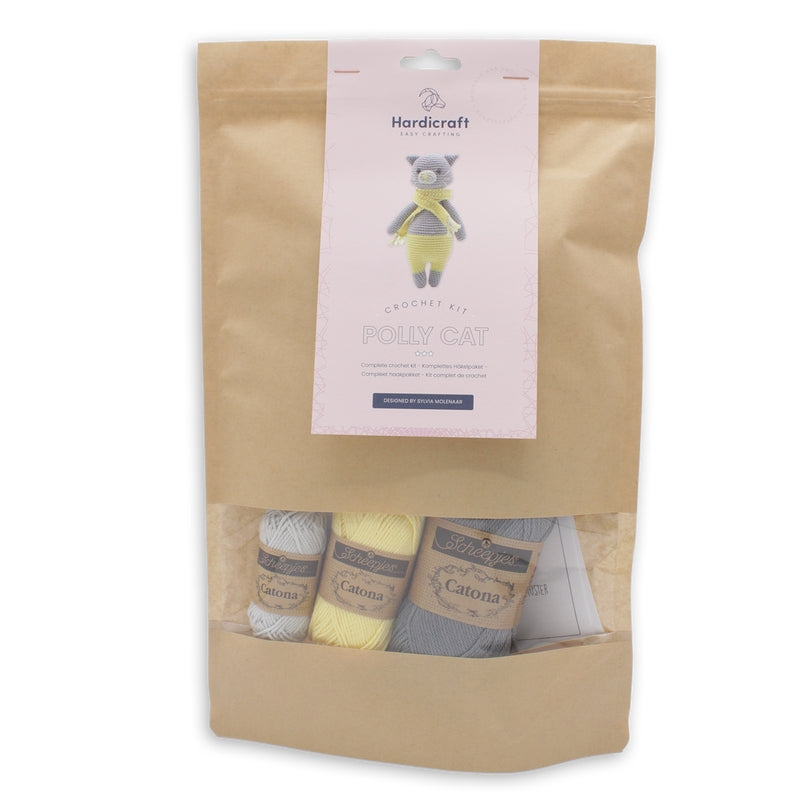 Attention all cat lovers, this is Polly! Polly also has a boyfriend Pixie. Pixie and Polly are the perfect addition to your amigurumi collection. This package contains a pattern, 100% cotton quality yarn and all the haberdashery needed to get to work (excluding crochet hook). Polly is approximately 21 cm tall and is made with a 2.5 mm crochet hook.
