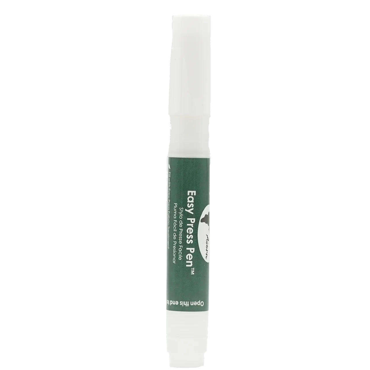Designed to work with your fabrics and safe to use with your sewing machine! This highly effective, easy to use Easy Press Pen™ makes it easy to create accurate, flat seams every time you quilt. Pen comes empty in package, fill with Easy Press Fabric Treatment™ 4 oz.