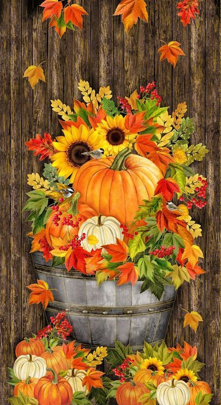 Fall is in the Air from Timeless Treasures - PANEL-CM2800 - Harvest Floral Metallic Panel - 24x 42