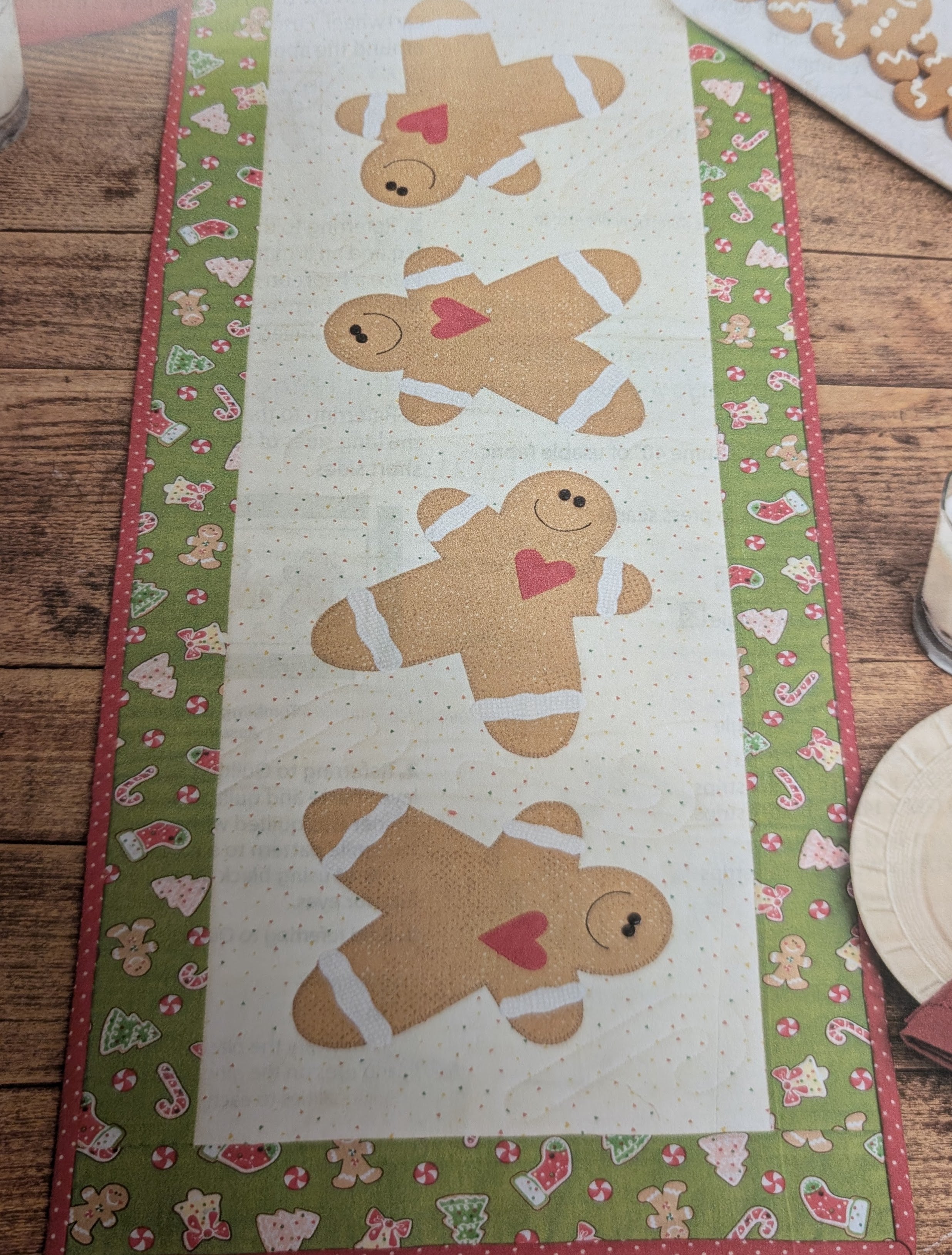 Gingerbread Table runner, supplies and pattern for top and binding. 14"x42"