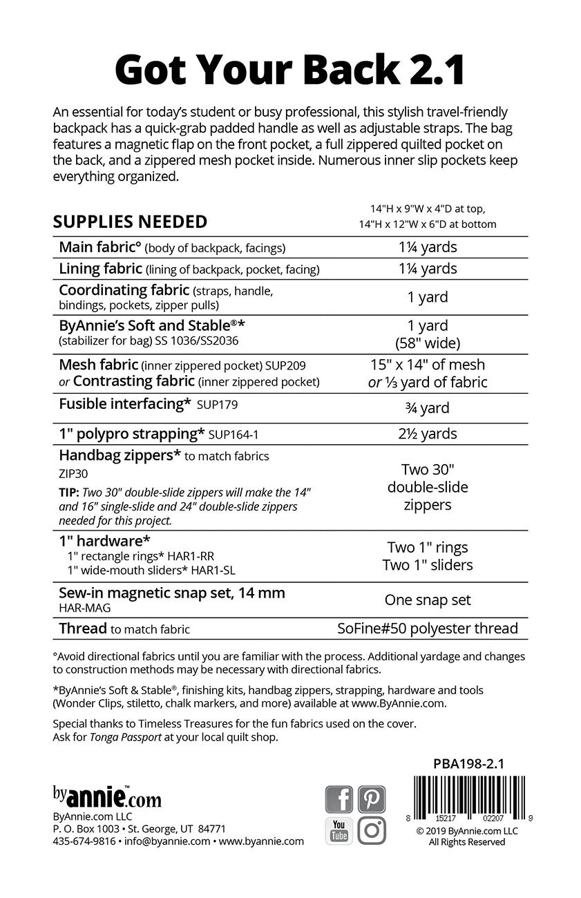 We have also filmed an Add-On Video for the project to help your customers make the backpack. Since the Got Your Back 2.1 pattern includes a coupon to get the Add-On Video at no charge, we would recommend that they purchase the new and improved version of the pattern from you.