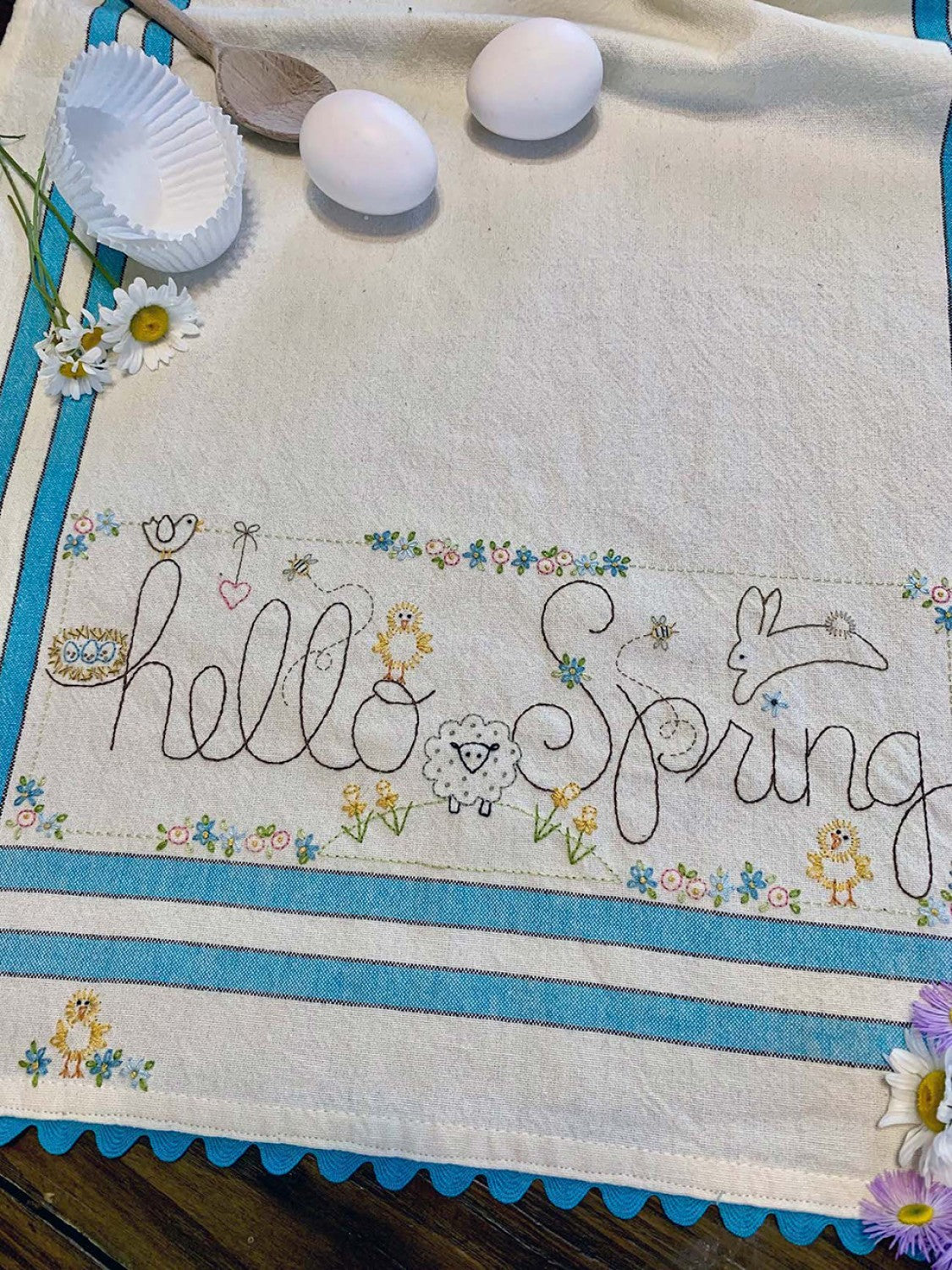 A cute and colorful dishtowel kit. These kits are fun and fast project for your customers. Includes towel, floss, full-size pattern and ric-rac. A sweet project for spring or block of the month club.