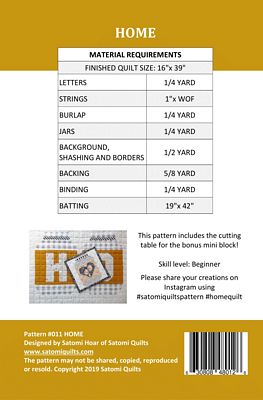 The Home Table Topper is traditionally pieced and is recommended for beginner quilters and up. The pattern includes step by step instructions with many diagrams for one size, a table runner (16in x 39in). It also includes a cutting table for a bonus mini Mason jar with a heart block.