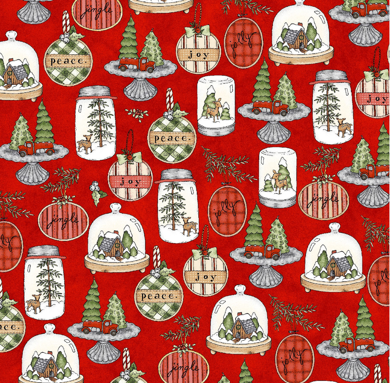Mason jar dioramas, candy-filled saltshaker snowmen, and traditional Scandinavian straw stars – Homemade Holidays by Kris Lammers is for the creative crafter in all of us. A bit nostalgic and altogether inspirational, this darling novelty group will have you reminiscing about those favorite holiday crafts from your childhood. The sweet gingham check gives the collection a cottagey feel and the range of greens and reds make charming vintage patchwork projects. Use the small-scale prints to stich up stuffed ornaments and gifts. The patchwork print is perfect for stockings filled with your homemade decorations. The centerpiece of the collection is running yardage of patches – each one showcasing an adorable homemade craft.