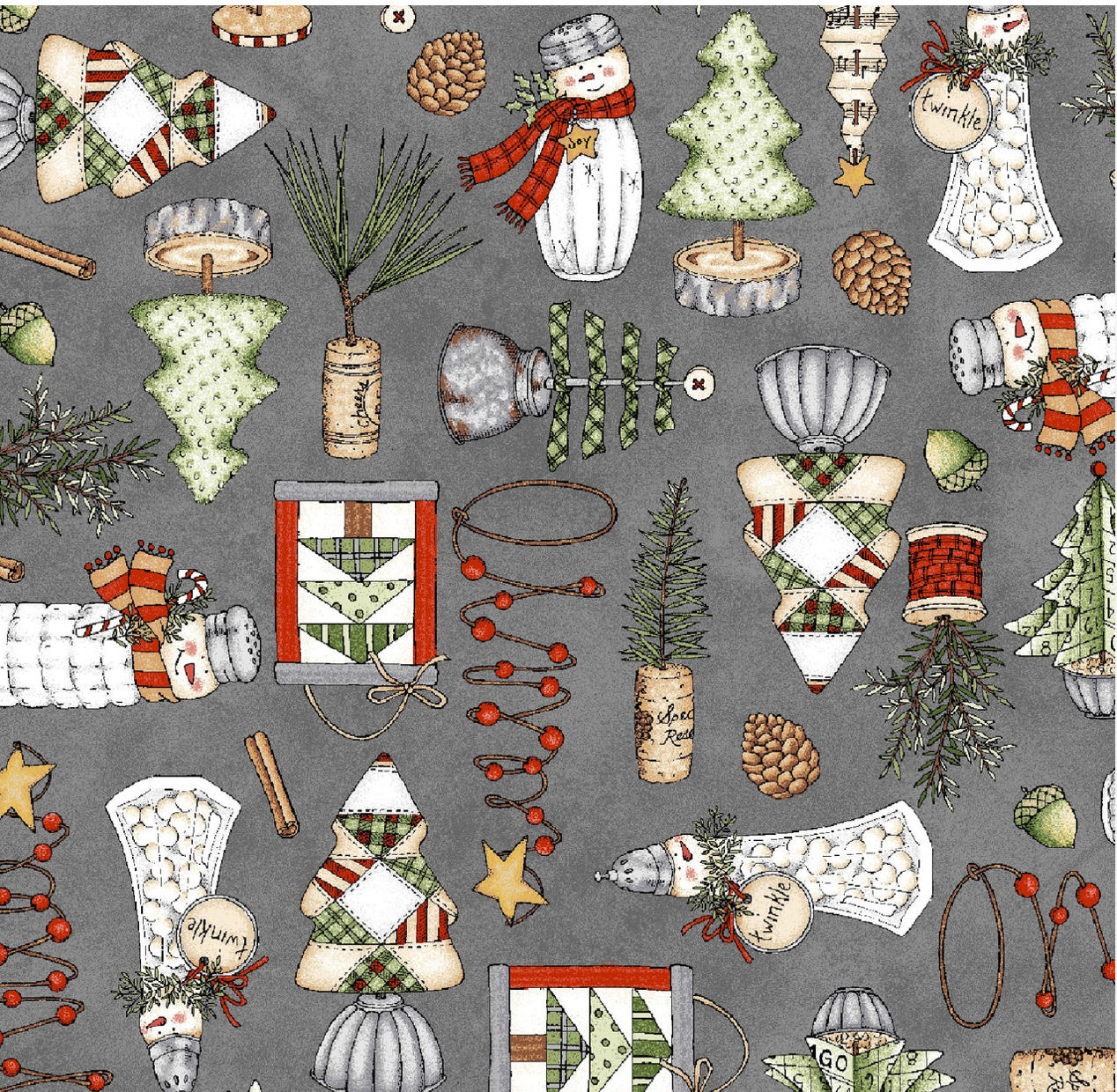 Mason jar dioramas, candy-filled saltshaker snowmen, and traditional Scandinavian straw stars – Homemade Holidays by Kris Lammers is for the creative crafter in all of us. A bit nostalgic and altogether inspirational, this darling novelty group will have you reminiscing about those favorite holiday crafts from your childhood. The sweet gingham check gives the collection a cottagey feel and the range of greens and reds make charming vintage patchwork projects. Use the small-scale prints to stich up stuffed ornaments and gifts. The patchwork print is perfect for stockings filled with your homemade decorations. The centerpiece of the collection is running yardage of patches – each one showcasing an adorable homemade craft.