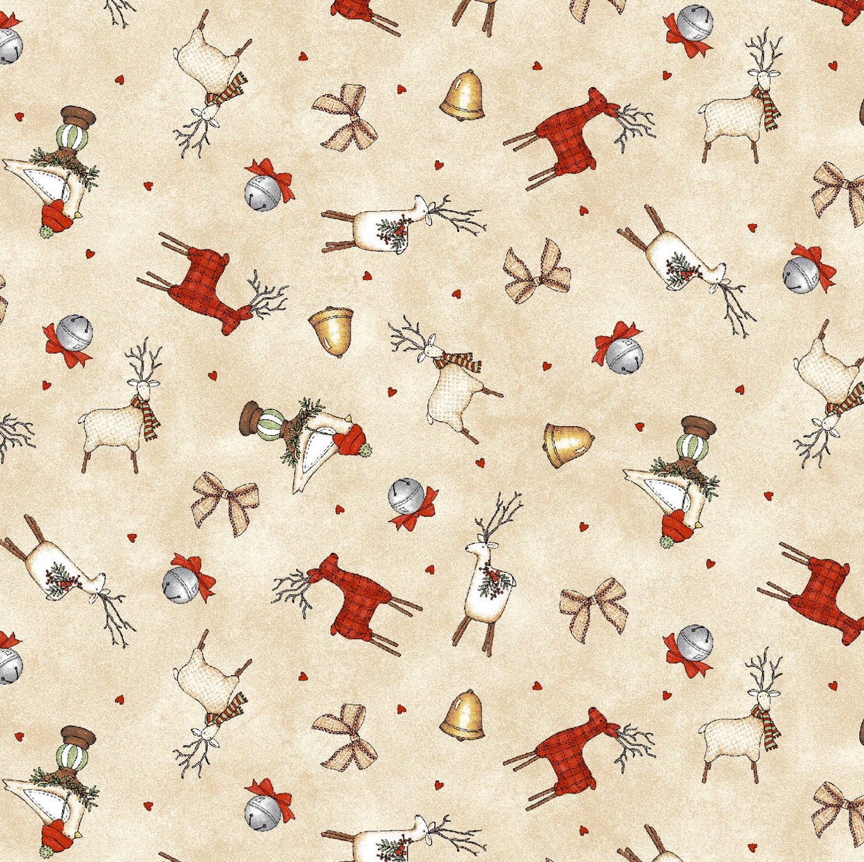 Mason jar dioramas, candy-filled saltshaker snowmen, and traditional Scandinavian straw stars – Homemade Holidays by Kris Lammers is for the creative crafter in all of us. A bit nostalgic and altogether inspirational, this darling novelty group will have you reminiscing about those favorite holiday crafts from your childhood. The sweet gingham check gives the collection a cottagey feel and the range of greens and reds make charming vintage patchwork projects. Use the small-scale prints to stich up stuffed ornaments and gifts. The patchwork print is perfect for stockings filled with your homemade decorations. The centerpiece of the collection is running yardage of patches – each one showcasing an adorable homemade craft.