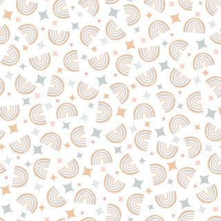 Honey Bunny features a soothing palette for all wee dreamers with gentle grey tones, soft peaches, and delicate whites. Playful scenes of rainbows and hot air balloons evoke the wonder of childhood adventures, while floppy ears and fluffy clouds add a touch of whimsy. Perfect for sewing sweet nursery quilts and soft baby gifts, Honey Bunny invites you to create comforting, handmade treasures for the littlest ones in your life.