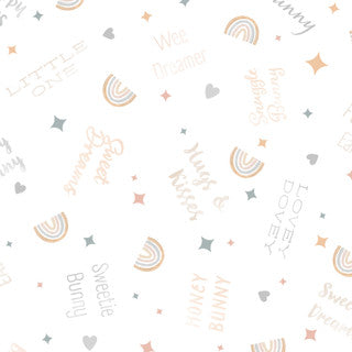Honey Bunny features a soothing palette for all wee dreamers with gentle grey tones, soft peaches, and delicate whites. Playful scenes of rainbows and hot air balloons evoke the wonder of childhood adventures, while floppy ears and fluffy clouds add a touch of whimsy. Perfect for sewing sweet nursery quilts and soft baby gifts, Honey Bunny invites you to create comforting, handmade treasures for the littlest ones in your life.
