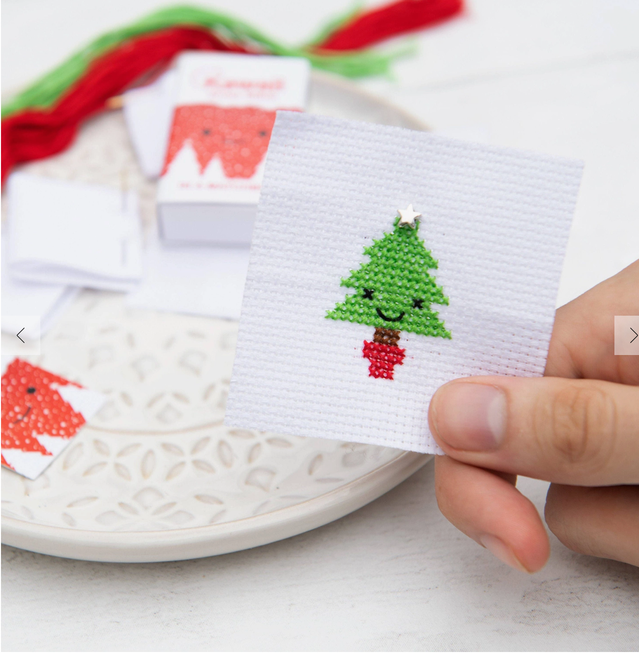 A super cute mini cross stitch kit gift, with an easy Christmas Tree pattern perfect for beginners or enthusiasts wanting a quick fun project. Everything you need to make this mini Kawaii style Christmas