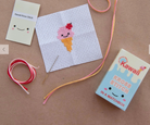 A super cute cross stitch kit gift, with a cool ice cream pattern perfect for beginners or enthusiasts wanting a quick project. Everything you need to make this mini Kawaii style ice cream cross stitch pattern is packed neatly into a matchbox.
