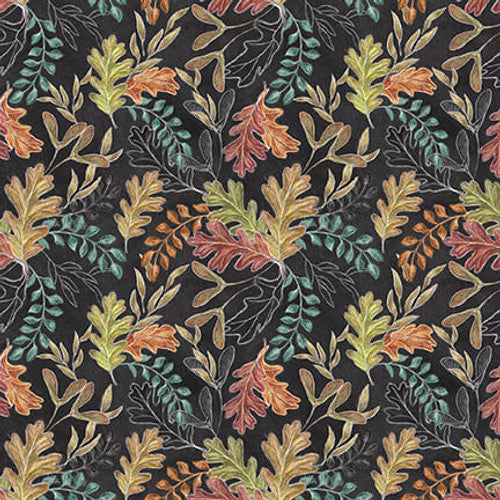 Late Summer Harvest by Lily Ford for Blank Quilting - 3309-99 - Charcoal Autumn Leaves - Sold in 1/4 yard increments