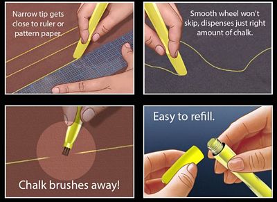 Smooth Wheel won't skip, dispenses just the right about of chalk. Chalk washes or brushes away. Narrow tips gets closer to the ruler or pattern paper. Smooth wheel won't skip, dispenses just right amount of chalk. Easy to refill.