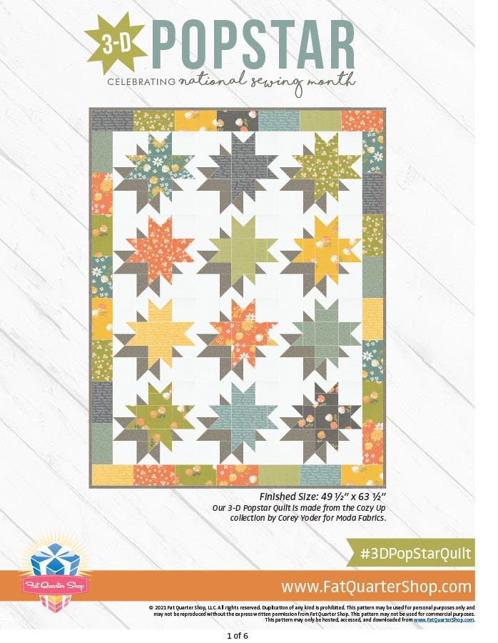 Popstar Quilt Kit. Finished size 49.5"x63.5". Pattern is included.