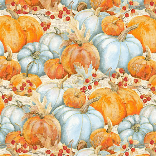 Pumpkin Kisses (Metallic) Collection by Grace Violet Designs for Henry Glass - Packed Pumpkins - Sold 1/4 Yards Increments