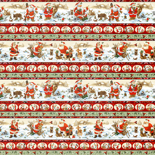 Santa's Friends by Robert Giordano for Henry Glass - Border Stripe - Sold in 1/4 Yd Increments