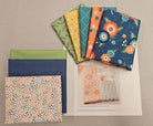 Scrap Lab Spiral Notebook Cover, Featuring the Clover and Dot Collection. Kit includes 5 Fat Quarters, 2 solids and fabric for lining. Fits a 7" x 10.5" spiral notebook, and even has a front pocket for pen, pencils, etc.