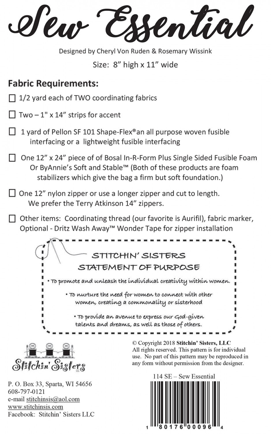 Sew Essential – this perfectly sized bag is your handy assistant for tackling quilting projects with ease. Includes dedicated pockets for thread, bobbins, scissors, rotary cutter and all of your essential quilting tools! Soft and Stable or Bosal In-R-Form foam stabilizer gives the bag a firm but soft foundation. Finished size: 8in high x 11in wide x 3in deep.