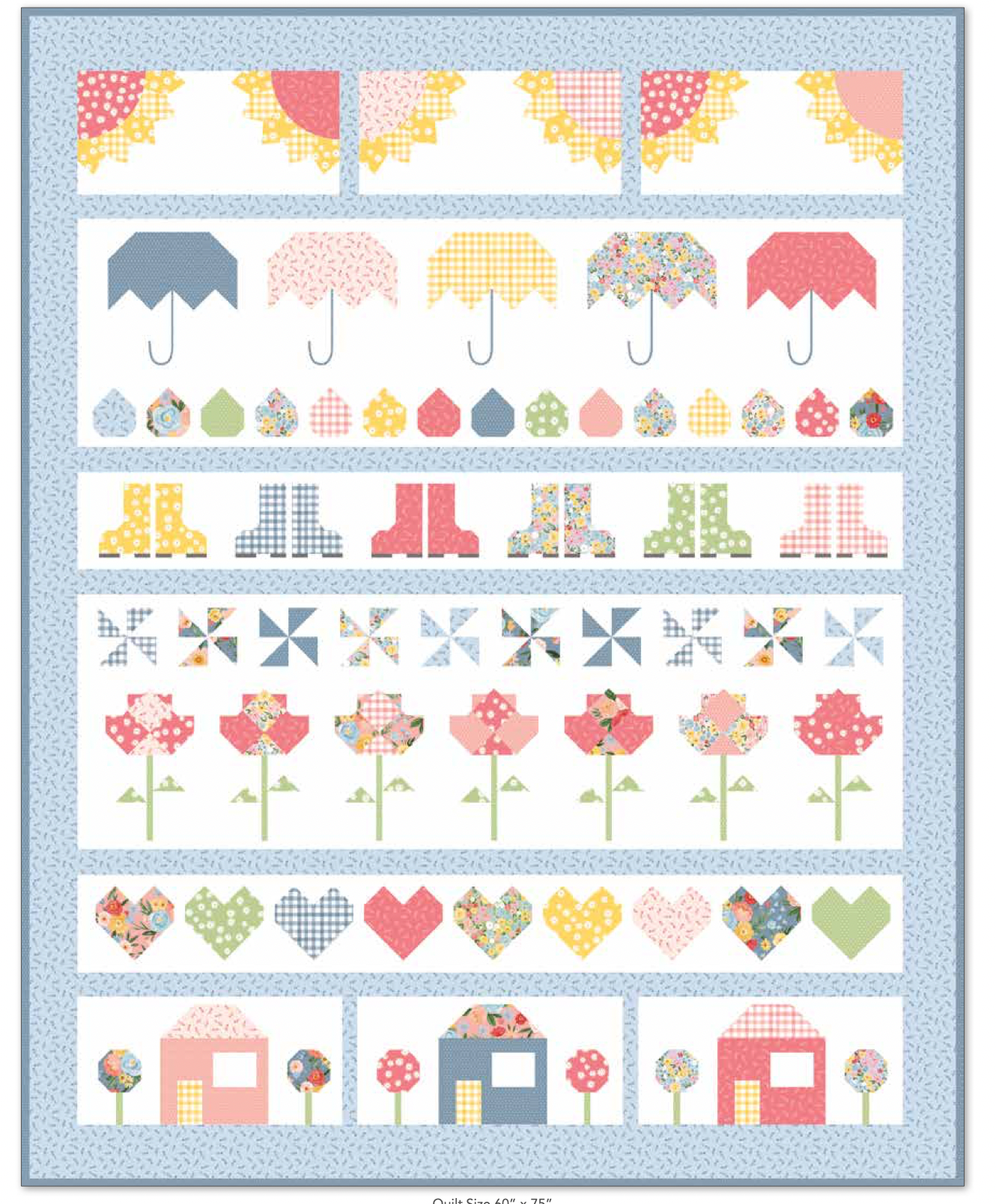 Singing in the Rain featuring Flower Garden QUILT KIT 60" x 70"